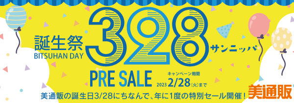 「美通販 生誕祭328 PRE SALE!」は、美通販の開業記念日である3月28日を記念して、年に一度開催される特別なキャンペーンです。期間中は、日頃よりご愛顧いただいているサロン様への感謝の意を込めて、「328」の数字に関連付いた特別価格設定にて商品を販売いたします。材料費の節約・まとめ買いにも最適な「美通販 生誕328 PRE SALE!」キャンペーンは2023年2月28日(火)まで開催。