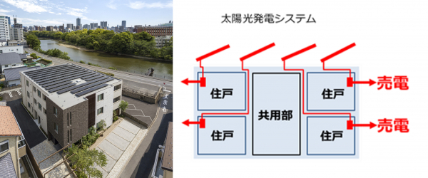 「シャーメゾンZEH」の例 / 太陽光発電を各住戸専用とすることで、入居者がメリットを実感