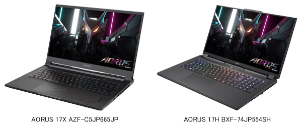 2023年2月2日 - GIGABYTE Technology Co., Ltd. 台湾・新北市 - コンピュータテクノロジーで世界をリードするGIGABYTE Technologyは、現在最高性能を誇るCPU、第13世代Intel Core i9プロセッサと、NVIDIA GeForce RTX 4090 Laptop GPUを搭載し、ディスプレイにリフレッシュレート240Hzの17.3型QHDパネルを採用した高性能ゲーミングノートPC/モバイルワークステーション「AORUS 17X AZF-C5JP665JP」を発売いたします。また、第13世代Intel Core i7プロセッサとNVIDIA GeForce RTX 4080 Laptop GPUを採用し、高リフレッシュレート360Hz駆動の17.3型フルHDパネルを採用した「AORUS 17H BXF-74JP554SH」も追加し、両製品ともGIGABYTEノートPC取扱店を通して2月9日より販売を開始いたします。