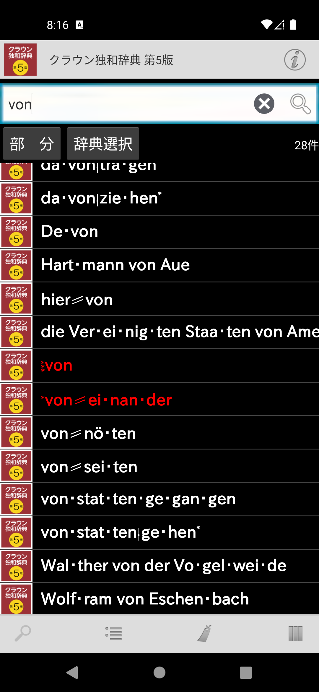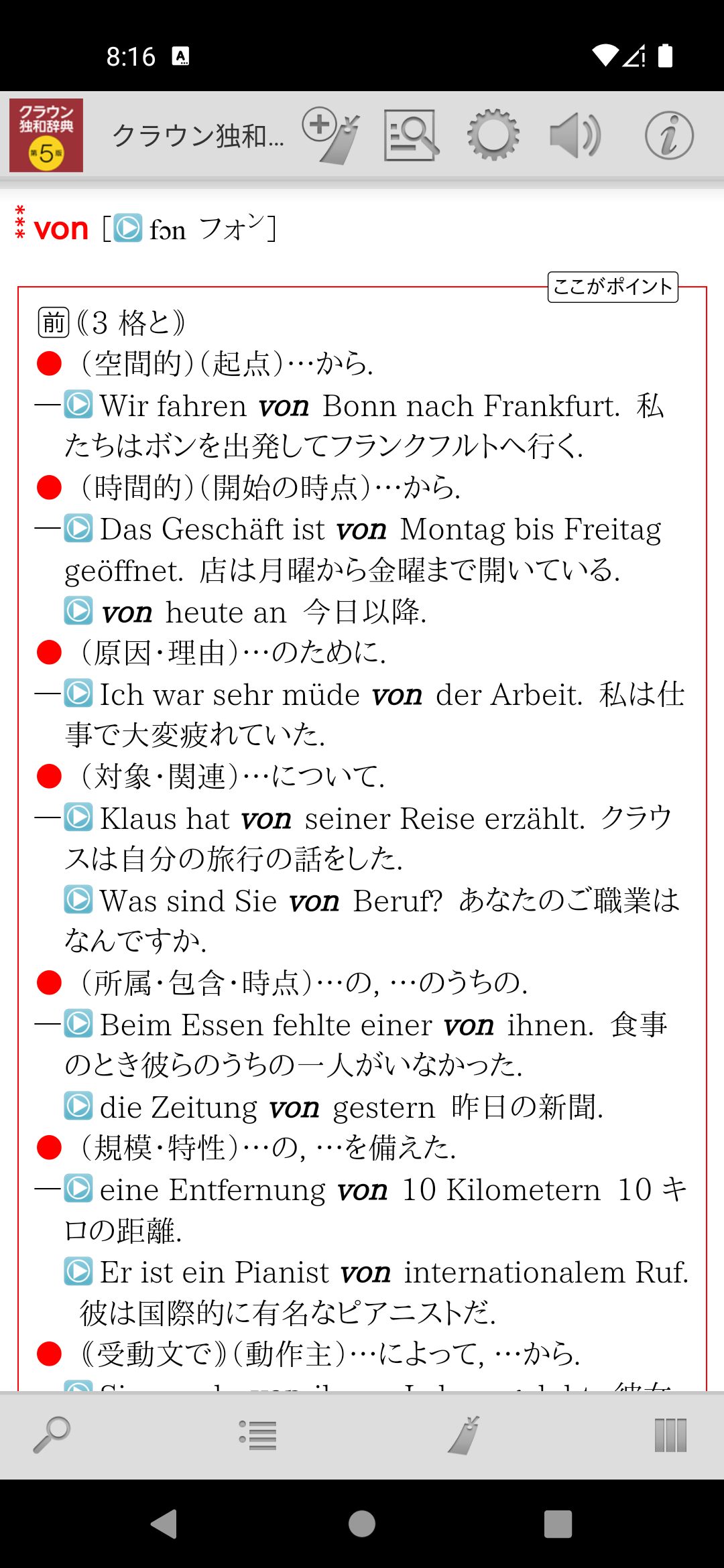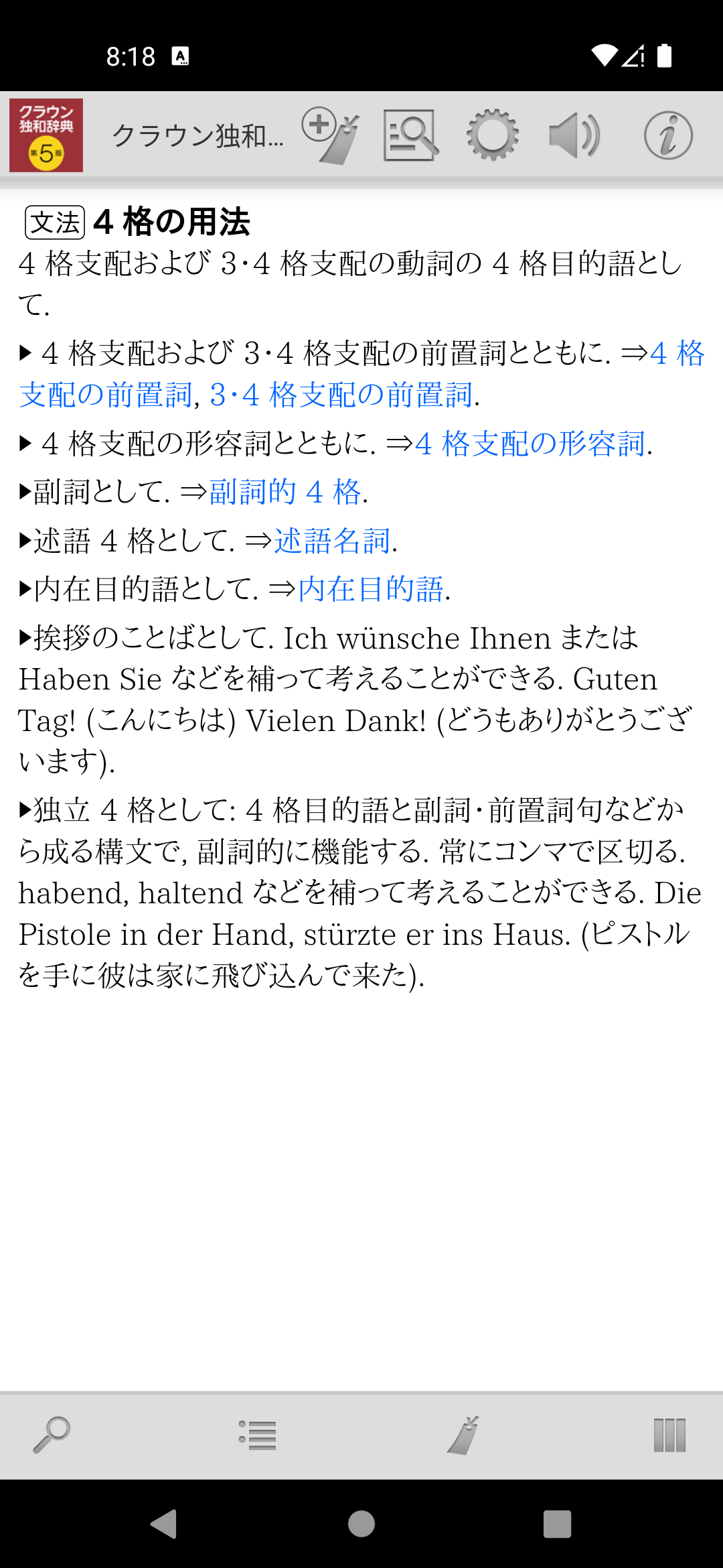 ・『クラウン独和(第5版)・新コンサイス和独辞典』は、初級者のつまづきやすいポイントも手厚くフォローしながら、上級者向けの情報までしっかりと収録した「クラウン独和辞典 第5版」と、引きやすい配列に、ドイツ新正書法の全面的採用を加え、待望の全面改訂を行った「新コンサイス和独辞典」を収録した、独和・和独辞典アプリです。
