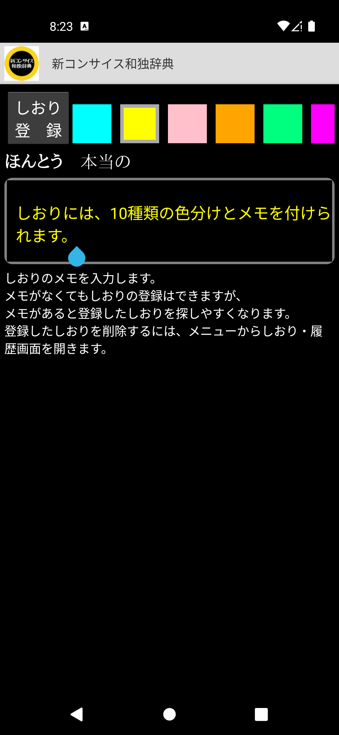 ・しおりには10色のパターン分けと、メモテキストを設定できます。