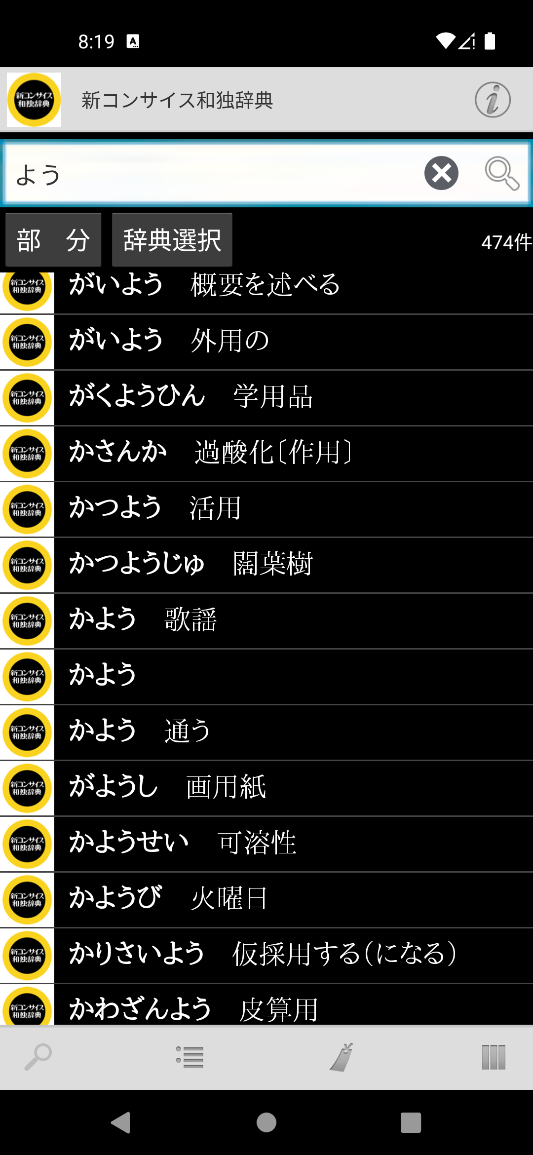 ・Androidの基本操作「共有」に対応!別のアプリで選択したテキストを、辞典ブラウザに検索させることが可能です。