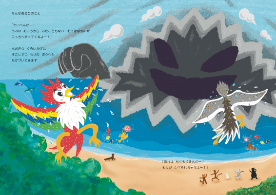 やがて海の向こうから、大きなくろいかげがやってきます。
