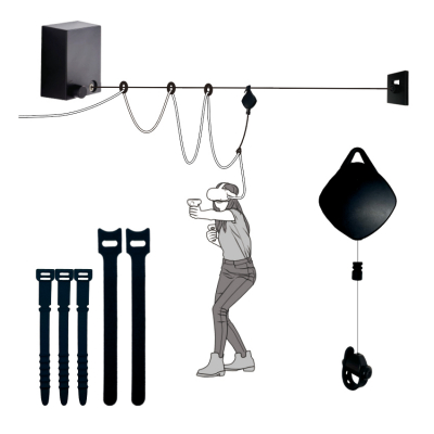 「ケーブル・ランニングワイヤ VR」には、バネの力で糸を巻き上げる「バネ式リール」が付属。ケーブルを適度な力で持ち上げ、プレイヤーの激しい動きにしっかり追従して、必要な分だけケーブルを引き下ろします。これによってケーブルの存在に気を取られることなく、快適にVRをお楽しみいただけます。