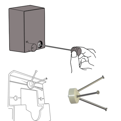 「ケーブル・ランニングワイヤ VR」は、本体と、ワイヤ受け金物を壁に固定して設置します。壁への固定は、木ネジによるものの他、石膏ボードピンをご用意。石膏ボードピンは壁に細いピンを組み合わせて固定する方で、取外し後に設置跡が目立ちにくいのがメリットです。