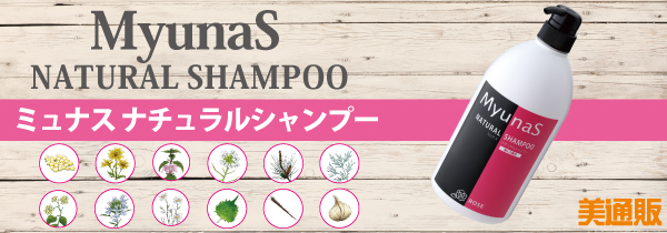 「ミュナス ナチュラル シャンプー」は、「美通販」のシャンプー・トリートメント部門でもロングセラーを続けている人気商品です。種類は、BA(ベーシック)・GA(グリーンアップル)・ZA(ザクロ)・RO(ローズ)・OR(オレンジ)の5タイプ。全タイプに共通して12種類の天然エキスを配合、さらにそれぞれのエイジングケアエキスをプラスしました。年齢を重ねた頭皮、パサつきが気になる髪に潤いを与えながら、スタイリングしやすい髪に導きます。