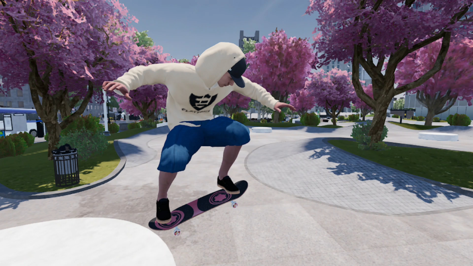 前後それぞれの足を2本のスティックで操作し、重心を細かくコントロールする非常にリアルな操作性。さらに、滑らかさと没入感を重視して開発された、リアルな物理エンジンを採用しました。実際のスケボーと同じように、初めてのキックフリップを成功させるためには長い時間の練習が必要となりますが、一度マスターすれば自由自在に技を繰り出すことが可能になります。