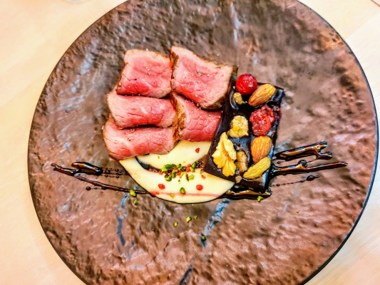 甘いものが苦手な男性に向けて、ジューシーな黒毛和牛と、チョコレートを使った2種類のソースを楽しめるバレンタイン期間限定の新商品の発売を決定いたしました。