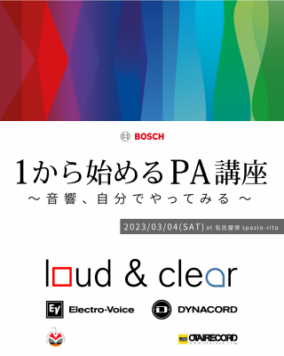 オタイオーディオ株式会社が運営する機材販売店OTAIRECORD は、ボッシュセキュリティシステムズ株式会社の有するPA 機器世界的ブランド「Electro-Voice」「DYNACORD」と共に2023 年3月4 日(土)、「OTAIRECORD presents 1からはじめるPA 講座~音響自分でやってみる~supported by Electro-Voice,DYNACORD」を名古屋栄のspazio ritaにて開催します。