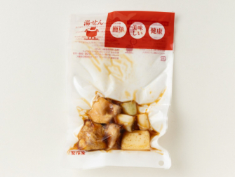 国産食材にこだわり、主役の鶏は、鹿児島県産の桜島どりを使いました。桜島どりは、鹿児島県の銘柄鶏で、平飼いで健康的に育てられ、高タンパクで脂身が少ないのが特徴です。しっとりとした歯触りとジューシーな肉質なので今回の食材に選びました。メニューは、やきとりのねぎまをアレンジしています。あえて串を外し食べやすくしました。その他の食材も国産で、鶏肉と相性の良い白ねぎに、焼豆腐を組み合わせています。醤油、みりん、砂糖で煮詰めたタレでとろりと仕上げてあります。湯煎で簡単に、食卓の一品が完成するので便利です。お召し上がりの際には、お好みで七味やコショウをふりかけるとさらに美味しさが引き立ちます。