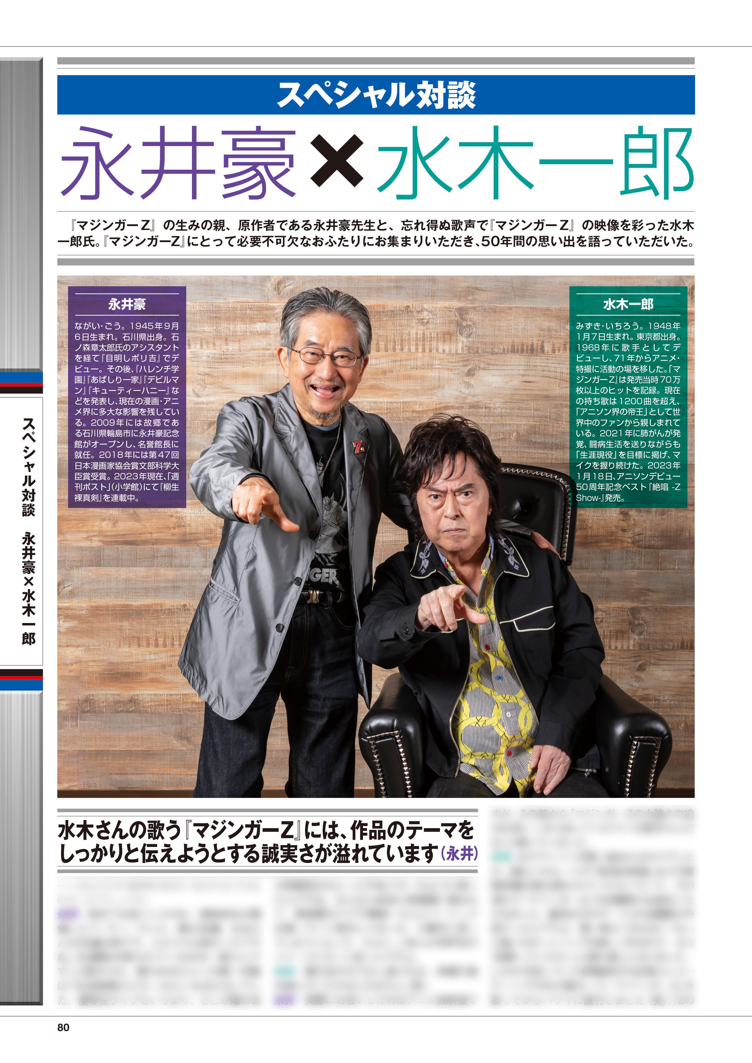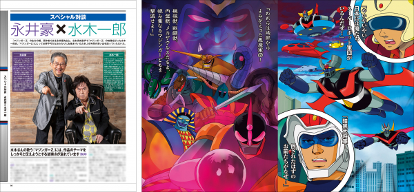 『マジンガーZ』ホビー50年の歴史を写真付きで解説するとともに、アニメーター越智一裕が描くピクチャーストーリー「スーパーロボット軍団 ダイナミック大決戦」も掲載!『マジンガーZ』原作者である永井豪先生と、その主題歌を歌う水木一郎さんのスペシャル対談も収録いたします!
