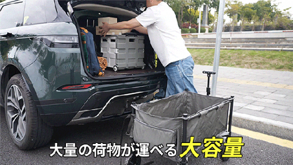 大容量のためキャンプなどのアウトドアで、折りたたみ式テーブルや椅子、食材、飲み物などを一度に運ぶことができます!