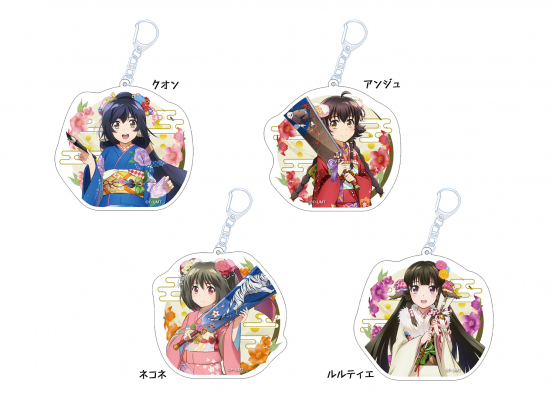 『クオン』『アンジュ』『ネコネ』『ルルティエ』4人の可愛らしい描き下ろしイラストを、透明度と耐久力に優れたアクリル素材に美麗に印刷させて頂きました。