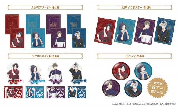 尚、描き下ろしデザインの「A4クリアファイル(4種類)」「アクリルスタンド(4種類)」「缶バッジ(4種類)」「B2ポスター(4種類)」も販売致します。通販サイト「ONKYO DIRECT」、秋葉原店舗「音アニ」ともに、2月24日(金)15:00より販売開始いたします。