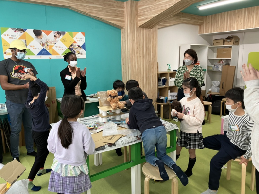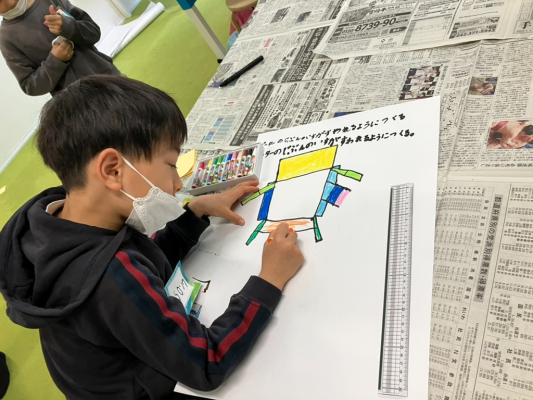 子どもたちは絵本を読み、物語の登場人物の課題を抽出し、問題を解決する方法をチームで話し合い、解決するためのものを実際に作り、発表を行いました。作る過程では、身近にある材料を組み合わせ、チームでコミュニケーションを大切に協力しながらものづくりを行いました。