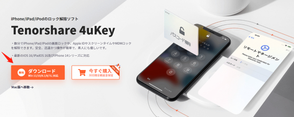 数分でiPhone/iPadの画面ロック、Apple ID、スクリーンタイム、MDMロックを解除できます。安全、高速、使いやすいソフトです。最新のiOS 16/iPadOS 16とiPhone 14シリーズに対応しています。