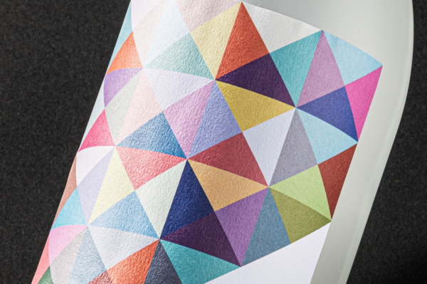 「TANT」の特徴である、紙の表面に凹凸を表現するエンボス模様は、和紙のような手触りで、商品のラベルやパッケージにより高級感を出すことができます。また、基準色である白を採用したことにより、洋風・和風どちらのデザインでも違和感なく、これまで和紙ラベルでは難しかった加工や色味を多彩に表現する事が可能となりました。