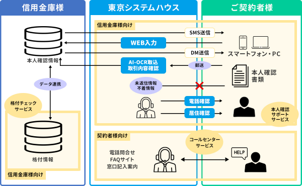 こうした背景を踏まえ、当社では本人確認における郵送業務や取込内容の確認といった継続的顧客管理における一連の業務をサポートするサービスの提供を開始しました。