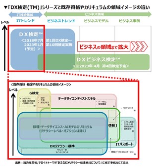 ■「DX検定(TM)」とは(図「DX検定シリーズと既存資格やカリキュラムの領域イメージの違い」をご参照ください)