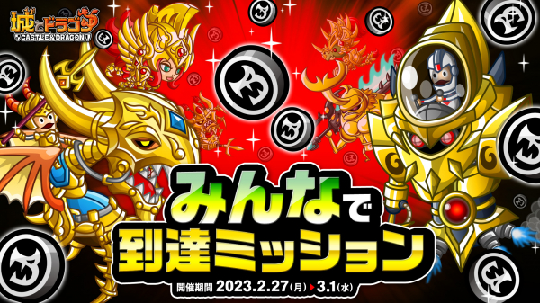 株式会社アソビズム(本社:東京都千代田区、代表取締役:大手智之)は、App Store・Google Playにて好評配信中の『城とドラゴン』で、「みんなで到達ミッション」を2023年2月27日(月)より開催いたします。