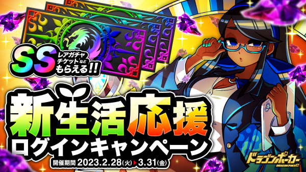 株式会社アソビズム(本社:東京都千代田区、代表取締役:大手智之)は、App Store・Google Playにて好評配信中のリアルタイム合体カードバトル『ドラゴンポーカー』で、2023年2月28日(火)より「新生活応援ログインキャンペーン」を開催することをお知らせいたします。