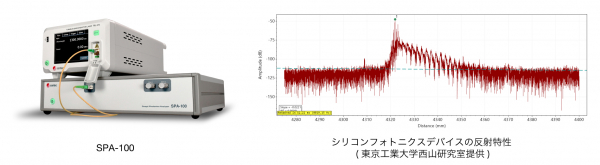 santec株式会社(本社 愛知県小牧市)は、OFDR (Optical Frequency Domain Reflectometry)技術を用いた波長掃引型フォトニクスアナライザ SPA-100 (以下「本製品」といいます。)を開発しました。本製品は、santec波長可変レーザ (TSLシリーズ)のアドオンモジュールとして機能し、フォトニクスデバイス評価に要求される3つの機能(反射点計測, 波長依存損失計測, 近接センシング)を提供する分析装置です。広帯域波長可変のTSLと組み合わせることで、フォトニクスデバイスの損失点の位置を5umの高い分解能で検出できます。また、光コヒーレント検出技術を採用したことにより、1 回の波長掃引で 70dBを超える広いダイナミックレンジで波長依存損失 (WDL)が測定できます。さらに、特許取得済みの近接センシング機能が、ファイバプローブとデバイス間の精密な距離測定を実現し、シリコンフォトニクスデバイス生産ラインにおいてウェハレベル特性評価時のアライメント工程を容易にします。これらの特徴により、本製品は、シリコンフォトニクス及び小型光コンポーネントの開発や生産など様々なアプリケーションで理想的なツールとなっています。