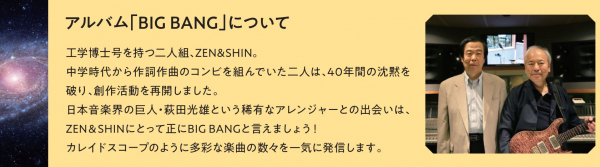 ■キャッチコピー「工学博士号を持つ二人組、Zen&Shinが紡ぎ出す音楽のビッグバン。衝撃のデビュー・アルバム!」