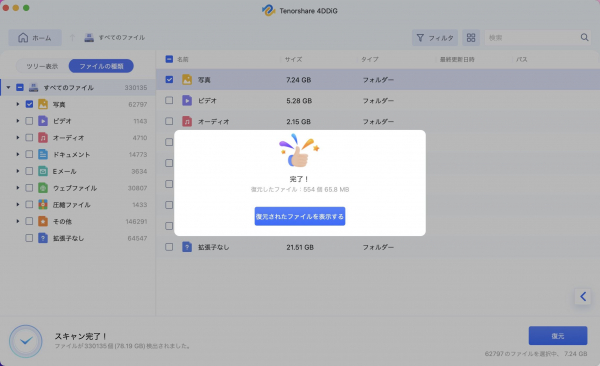 Tenorshare 4DDiGデータ復元ソフト: Windows & Macで写真、動画、音楽、Word、PPT、PDF、Excelなどのドキュメントを含むさまざまな種類のファイルを復元できます。