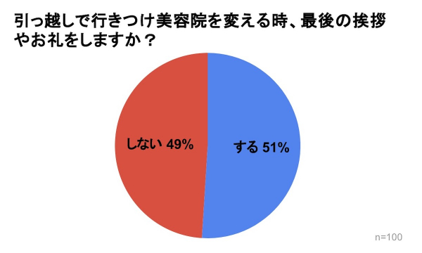 「引っ越しで行きつけ美容院を変える時、挨拶やお礼をしますか?」のアンケート調査を行ったところ、挨拶する派としない派でほぼ半数ずつという結果となりました。