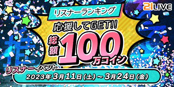 ライバーランキングと併せて、総額100万コイン配布のリスナーランキングも開催!