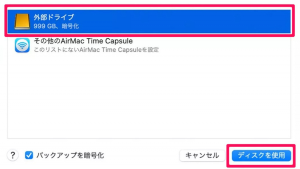 (4)Time Machineのバックアップに使用するディスクを選択します。