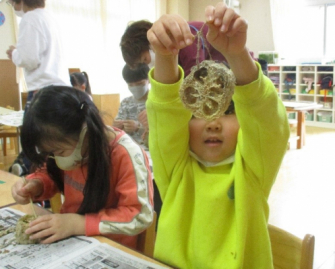 マイクロプラスチックごみを排出しない「ヘチマたわし」を園児たちと共に作りました。