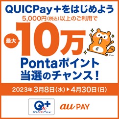 ■「QUICPay+をはじめよう 最大10万Pontaポイント当選のチャンス!」キャンペーンについて