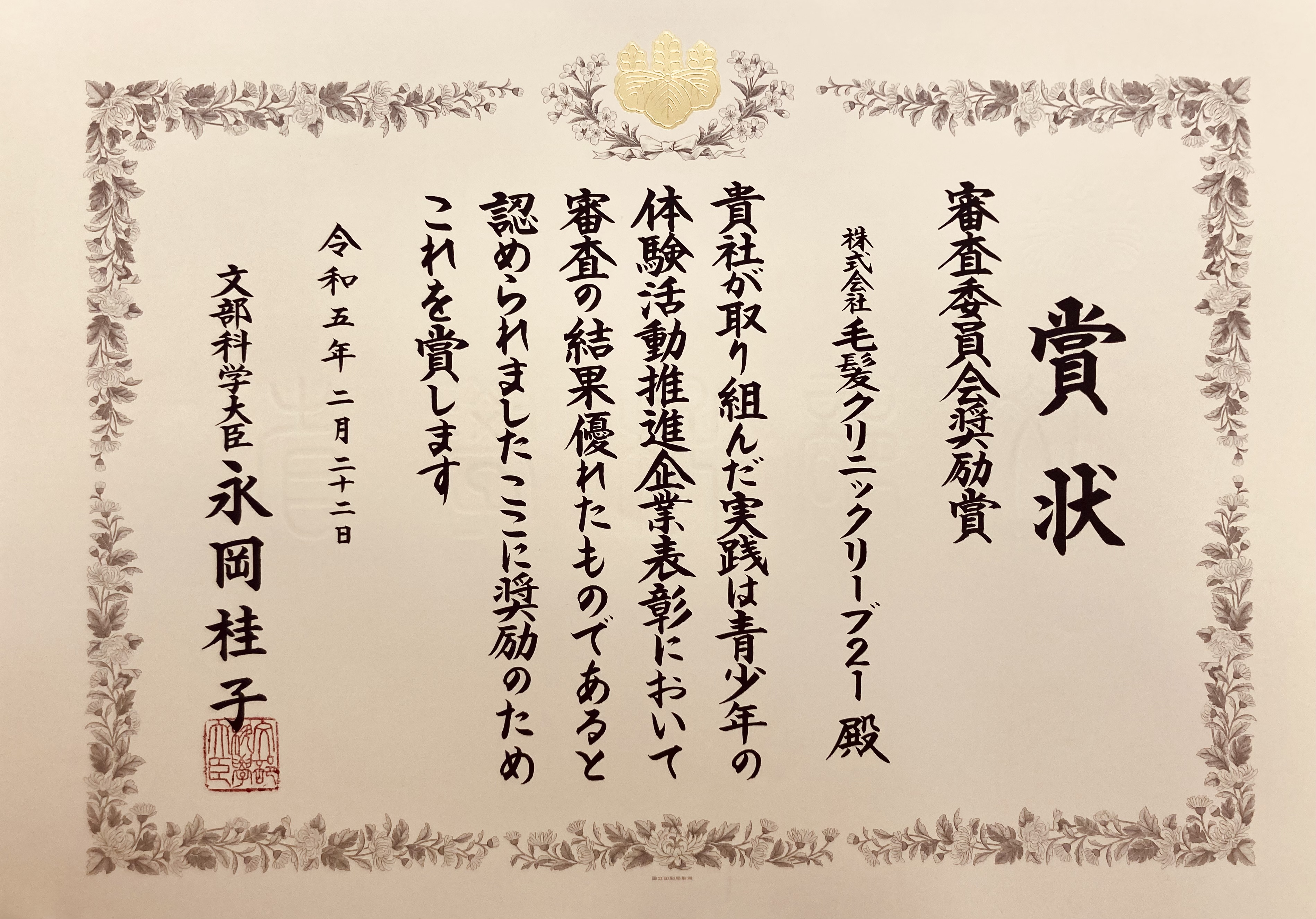 文部科学省が主催する「青少年の体験活動推進企業表彰」は、
