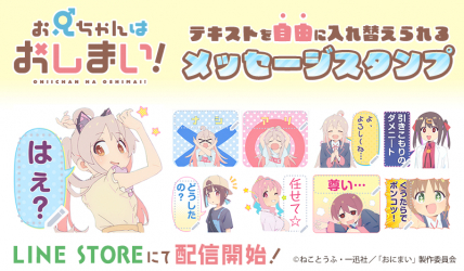 大人気TVアニメ「お兄ちゃんはおしまい!」のLINEメッセージスタンプがインクルーズより配信開始! 好評配信中のLINE着せかえに続き、LINEスタンプでもTVアニメ「お兄ちゃんはおしまい!」の世界観をお楽しみください。