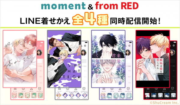 株式会社シュークリーム×株式会社インクルーズが贈るLINE着せかえシリーズ、倉橋トモ先生の作品「明けても暮れても -続 いつか恋になるまで-」、ニャンニャ先生の作品「スイートハート・トリガー」、灰田ナナコ先生の作品「来世の君にくちづけを」、汀えいじ先生の作品「嫉妬は愛を曇らせる」がLINE着せかえとなって新登場です。今後もシュークリームとインクルーズのコラボレーションにより、続々とLINE着せかえの新作配信を予定しておりますので、是非お気に入りのLINE着せかえを見つけてみてください。