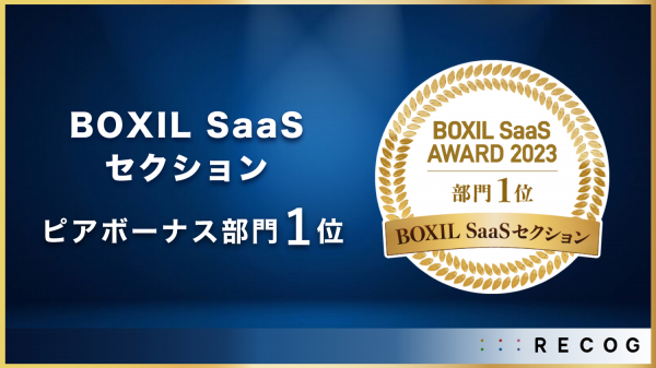 株式会社シンクスマイル(本社:東京、代表取締役:新子)が開発・運営するチームワークアプリ「RECOG」 は、3月7日にスマートキャンプ株式会社(以下「スマートキャンプ」)が今最も評価されているSaaS(※1)を表彰する「BOXIL SaaS AWARD 2023」においてBOXIL SaaSセクション ピアボーナス部門1位で表彰されました。