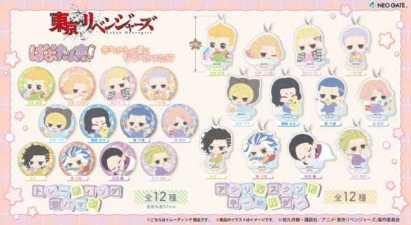 TVアニメ『東京リベンジャーズ』より、NEO GATEオリジナルデフォルメ【ばぶたんず!】の描き起こしイラストを使用した、「トレーディング缶バッジ」と「トレーディングアクリルスタンドキーホルダー」の発売が決定いたしました!