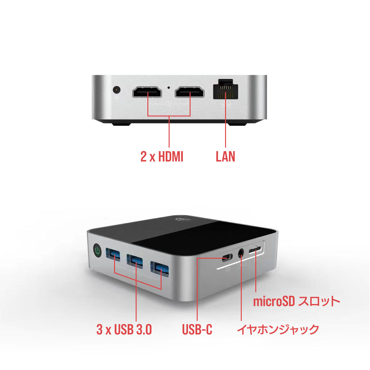 LZ16Jは4コア8スレッドの高性能CPU、Intel(R) Core(TM) i5-1030NG7を搭載した、わずか0.2 LサイズのミニPCです。9 cm未満の筐体に16 GBメインメモリ、512 GB M.2 NVMe SSDを搭載しています。4K / 60 fps、デュアルモニタ出力に対応するHDMI 2.0のほか、USB Type-C、有線2.5G LANポート、microSDカードスロットを備え、モニター裏に固定できるVESAマウンタが付属します。場所を取らずにリビングPCや在宅ワークなどに活用できます。