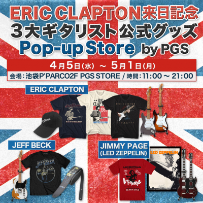 日本最大の音楽・映画・ドラマ・スポーツ・アニメ公式グッズ・ストア PGSを運営する株式会社JAMSHOPPINGは、エリック・クラプトン、ジェフ・ベック、ジミー・ペイジ (LED ZEPPELIN)の公式グッズを集めたポップアップ『ERIC CLAPTON来日記念・3大ギタリスト公式グッズPop-up Store by PGS』を、池袋P’PARCO2Fに移転したPGS STOREにて、2023年4月5日(水)~5月1日(月)の日程でオープンいたします。