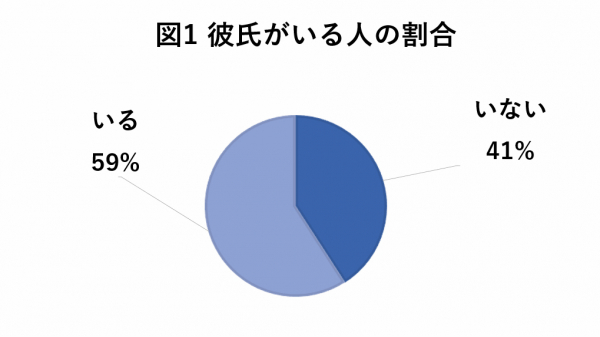 「彼氏がいる」と回答した女性は59%、「彼氏がいない」と回答した女性は41%という結果になりました。