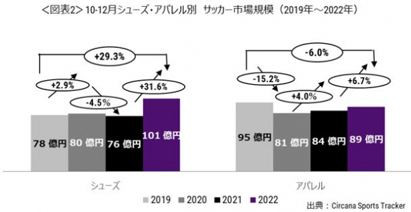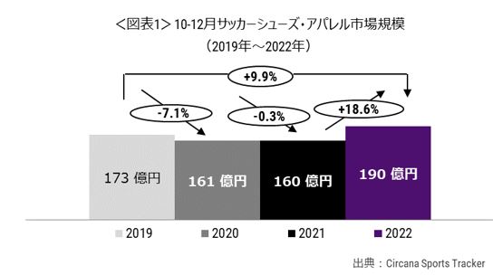 サッカーシューズ・アパレル市場規模、2022年10月-12月は前年同期比18.6%増