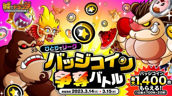 株式会社アソビズム(本社:東京都千代田区、代表取締役:大手智之)は、App Store・Google Playにて好評配信中の『城とドラゴン』で、2023年3月14日(火)より「ひとりでリーグバッジコイン争奪バトル」を開催いたします。