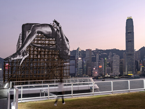 JR specially adds a touch of Hong Kong to this artwork, fusing the traditional architectural craftsmanship - bamboo scaffolding for the first time.
