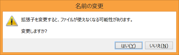 (3)「拡張子を変更すると、ファイルが使用できなくなる可能性があります」というメッセージが表示されたら、「はい」をクリックして拡張子を変更します。