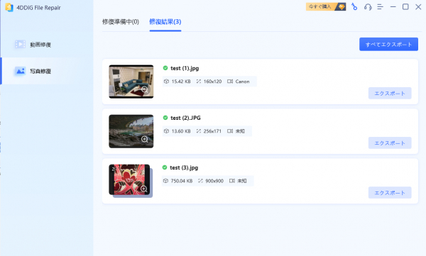 ステップ3:修復完了後、「エクスポート」ボタンをクリックすると、修復された写真を任意の場所に保存できます。