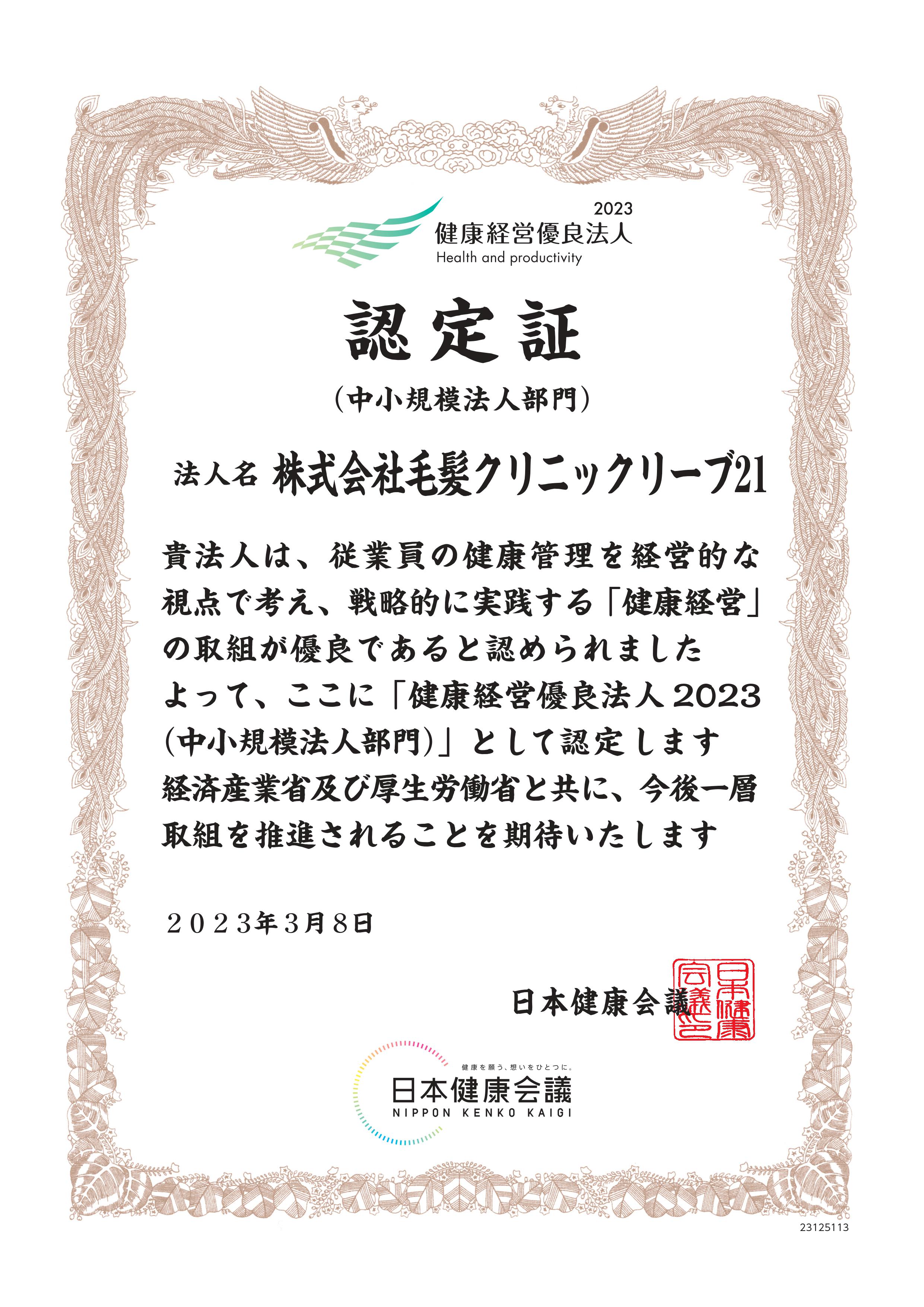 「健康経営優良法人2023(中小規模法人部門)」に