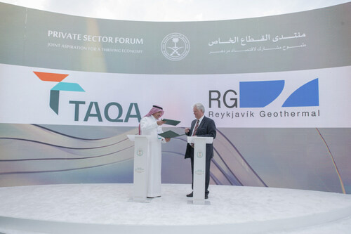 リヤド(サウジアラビア), 2023年3月16日 /PRNewswire/ -- 本日リヤドで開催された公共投資基金(英文省略PIF)民間部門フォーラムにおいて、産業化・エネルギーサービス会社(TAQA)とレイキャビク・ジオサーマル(英文省略RG)が、サウジアラビア、リヤドに本社のあるTAQA ジオサーマル・エネルギー LLCを設立する合弁契約に署名しました。