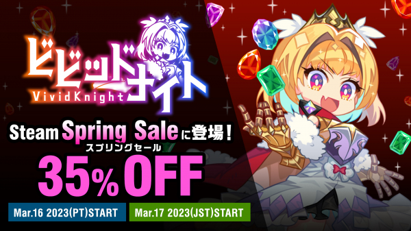 株式会社アソビズム(本社:東京都千代田区、代表取締役:大手智之)は、日本時間2023年3月17日(金)よりSteamにて開催される“Steamスプリングセール”に、『ビビッドナイト』が登場することをお知らせいたします。