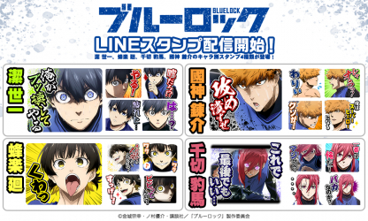 TVアニメ「ブルーロック」の人気キャラクター別のLINEスタンプがインクルーズより4点一斉に配信開始!今回のキャラクターは、「潔 世一ver.」「蜂楽 廻ver.」「國神錬介ver.」「千切豹馬ver.」の4人のデザインです。